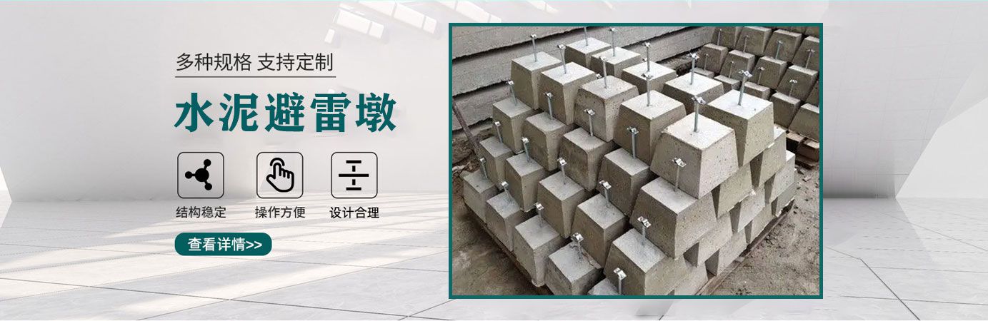 宏印水泥避雷墩廠是一家專業從事防雷工程設計與施工的企業。 多年來,隨著公司業務持續健康的發展、技術實力不斷增強、專業人才不斷積累和素質極大提高,使企業發展至今成為省內為數不多內部架構合理完善的防雷企業。 施工部:本公司專業防雷施工隊伍,承接各種大小防雷工程施工,包括: 防雷工程: 避雷針支架水泥墩銷售,規格齊全,也可定做。 新建建筑物防直擊雷、舊建筑物防直擊雷整改、機房防雷工程、智能小區監控系統防雷、程控交換機綜合防雷、電力變電站接地工程、通信防雷及接地 ,防雷咨詢、專業培訓、技術解答、專業建議;防雷工程報建及驗收;防雷工程雷擊故障修復;防雷工程維護和保養等。提供檢測在線運行中防雷產品合格指標的專業測試服務。  不斷的學習是追求進步和積蓄能力的渠道;重視競爭,競爭促進了企業的進步和發展;重視業績,業績是企業生存和發展的關鍵;企業、員工和客戶是一個共同體,共同的進步是我們共同追求的目標 。...